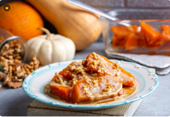 Descubre el sabor reconfortante de la tradición con nuestra calabaza caramelizada en miel, lechera y nueces. Un postre que evoca recuerdos y endulza tus momentos
